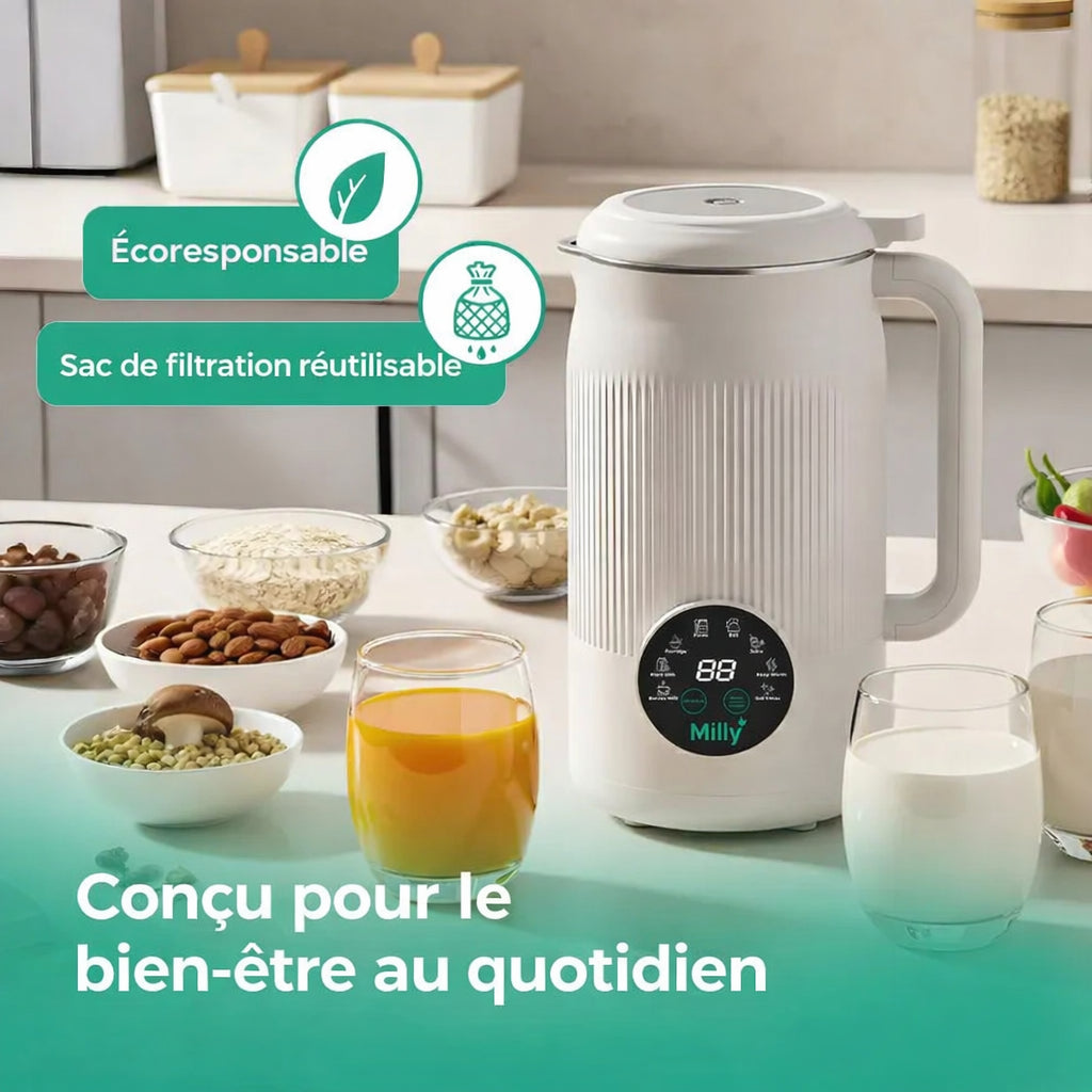 Préparez facilement vos laits végétaux et jus préférés à la maison grâce à notre appareil polyvalent et écoresponsable.