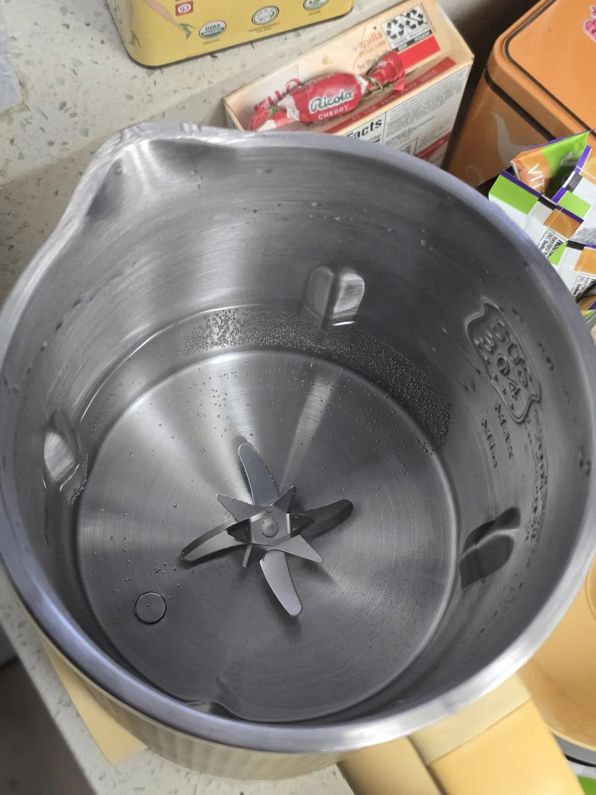 - 2. Système de lames affûtées — réduit les noix et céréales en une texture crémeuse, sans pulpe, ne nécessitant pratiquement aucun filtrage.
