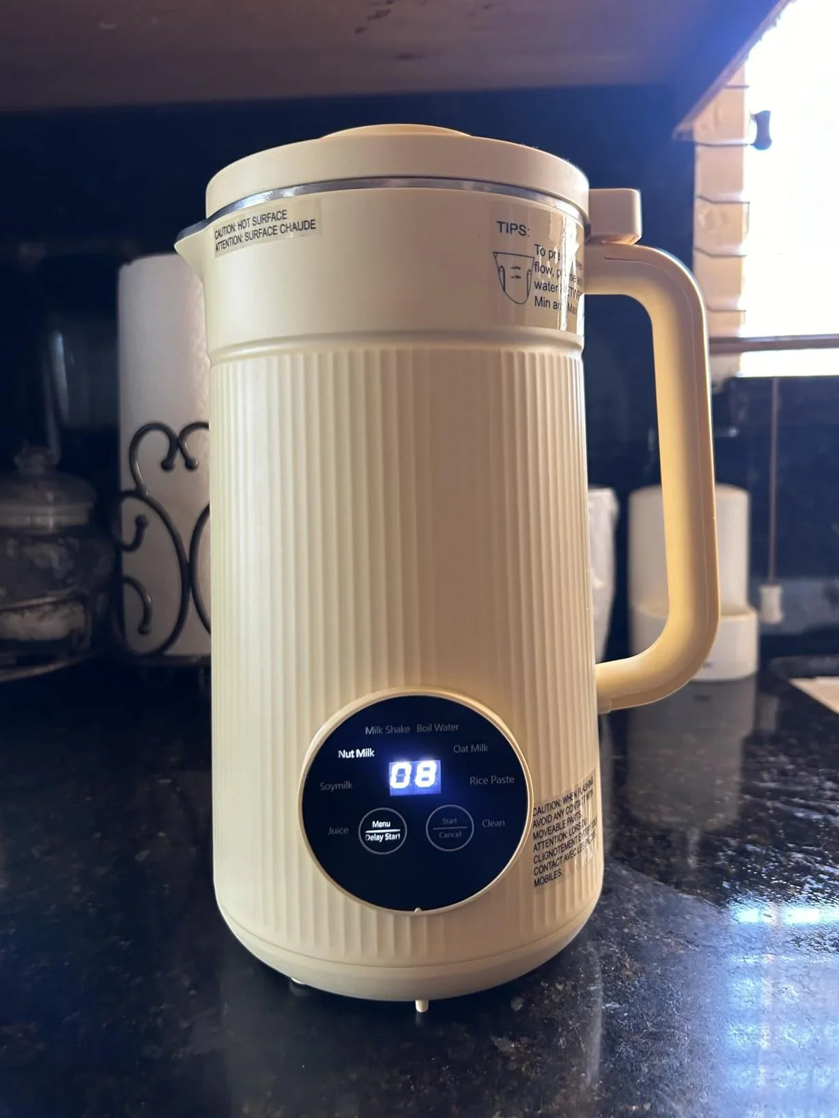 - 3. Programmes intelligents à touche unique — chaque fonction utilise des cycles de mélange et de durée optimisés (le mode Lait Végétal alterne pulsation et chauffe, le mode Soupe cuit doucement pour une texture soyeuse).
